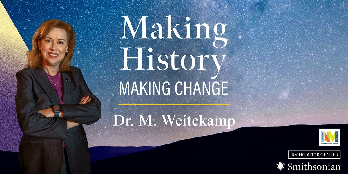 Join us at the April 14th Making History Making Change event in Irving, TX, for an inspiring evening with space historian Dr. Margaret A. Weitekamp, chair of the Smithsonian’s National Air and Space Museum’s Department of Space History and the curator of the Museum’s social and cultural history of spaceflight collection, as she explores how the Smithsonian preserves the cultural memory of spaceflight.