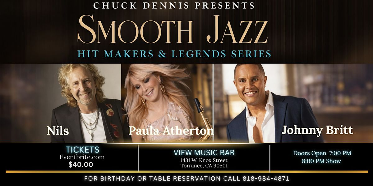 Join us at View Music Bar in Torrance for an electrifying performance featuring internationally acclaimed guitarist Nils, dynamic saxophonist Paula Atherton, and the soulful vocals and trumpet stylings of Johnny Britt. Each artist brings their own signature sound, chart-topping hits, and captivating stage presence to create a powerful musical experience.