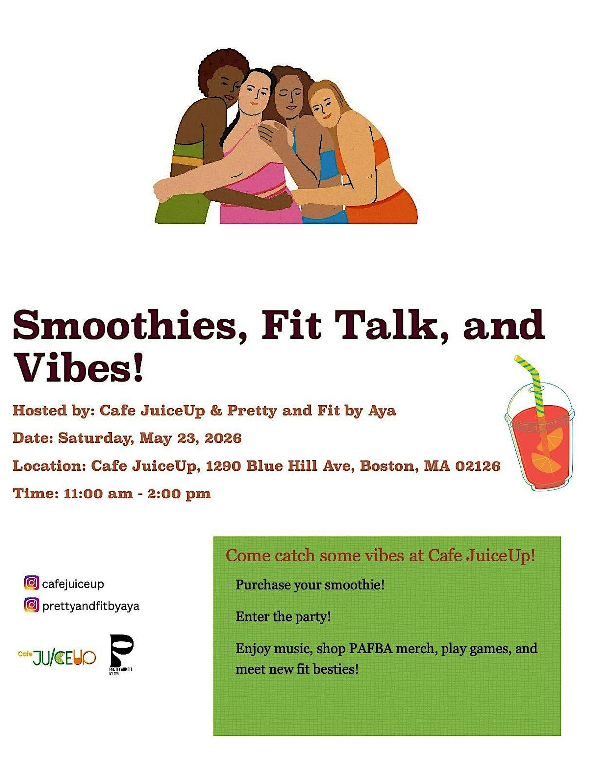 Get ready for an awesome in-person hangout where you can sip on delicious smoothies, chat about all things fitness, and soak up some chill vibes. Whether you're a workout warrior or just looking to kick back with a healthy treat, this event is the perfect spot to connect, learn, and have a blast. Don’t miss out on a good time and great company!