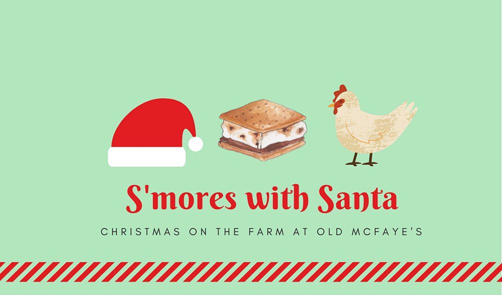 Old Mcfaye is inviting you to join her and the farm family for Christmas fun on the farm! S'mores with Santa will include hayride, pony ride, animal feedings, s'mores and time with Santa!