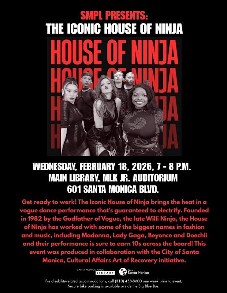 For disability-related accommodations, call (310) 458-8600 one week prior to event. Secure bike parking is available or ride the Big Blue Bus.