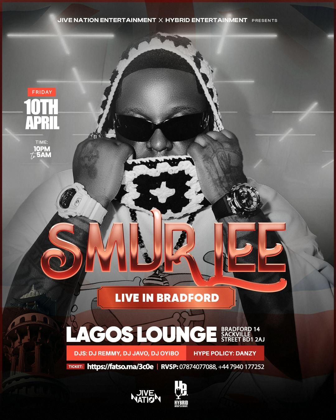 #SmurLeeLive #BradfordNights #LagosLounge #JiveNation #HybridEntertainment #AfrobeatsParty #BradfordEvents
