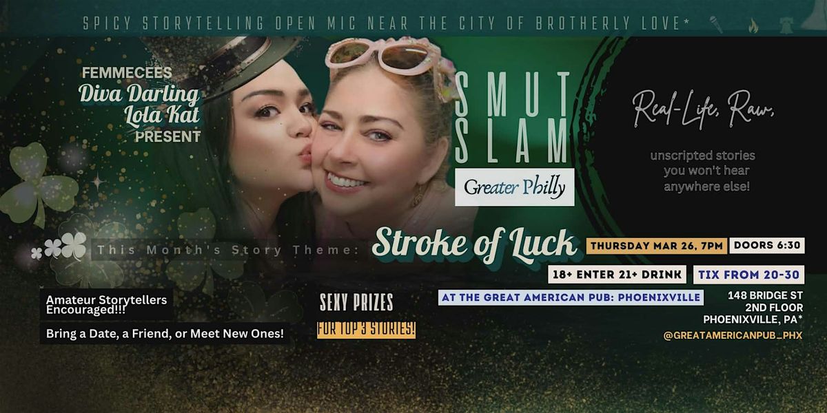We're all gettin' lucky this month as Smut Slam Greater Philly returns for another fabulously fun, inclusive, mind-blowing (among other things...) night of steamy stories. Nothing like a kick of spice to put some Spring in your step!