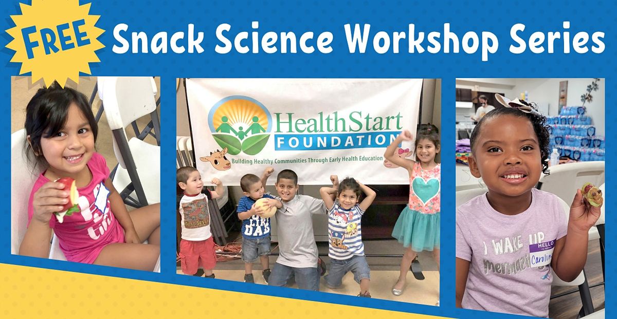 HealthStart's Snack Science Workshop Series brings health and science lessons to life with games, science experiments, healthy snacks, stories, and physical activities. Snack Science is a series of interactive workshops for kids 6-8 years old and their families. Each workshop teaches the science behind healthy habits and concludes with the kids making a healthy snack using fresh fruits and vegetables. Families are sent home with recipes in English and Spanish. Space is limited, so preregistration is required.