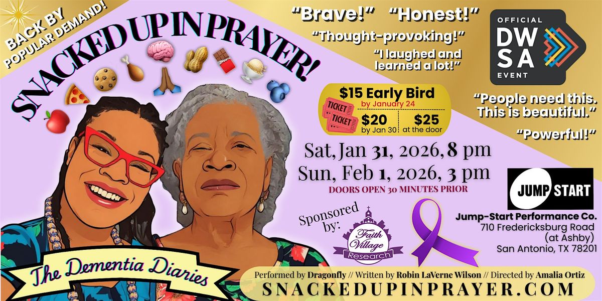 Back by popular demand and with the partnership of Faith Village Research Lab, Snacked Up In Prayer!: The Dementia Diaries will have its second ever staging to close out DreamWeek 2026 at Jump-Start Performance Co. on January 31 at 8pm, and February 1 at 3pm.
