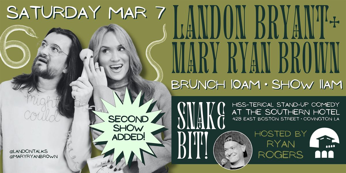 Get ready to be Snake Bit - a comedy night that packs a venomous punch. Join us at Southern Hotel for an evening of big laughs featuring Landon Talks and Mary Ryan Brown. Your ticket includes a brunch buffet followed by a live stand-up comedy show in an intimate setting. Come hungry, leave laughing, and beware… the humor bites back.