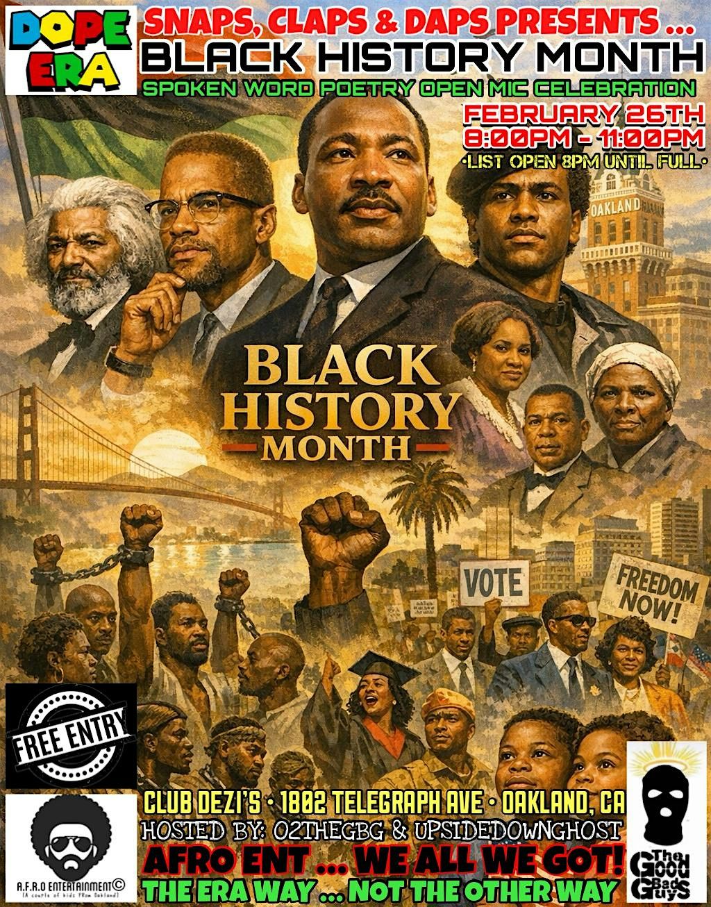 This is a FREE EVENT so RSVP for your tickets now! For more information or if you’re interested in performing, please DM our Instagram page at @acoupleofkidsfromoakland or @O2TheGBG.