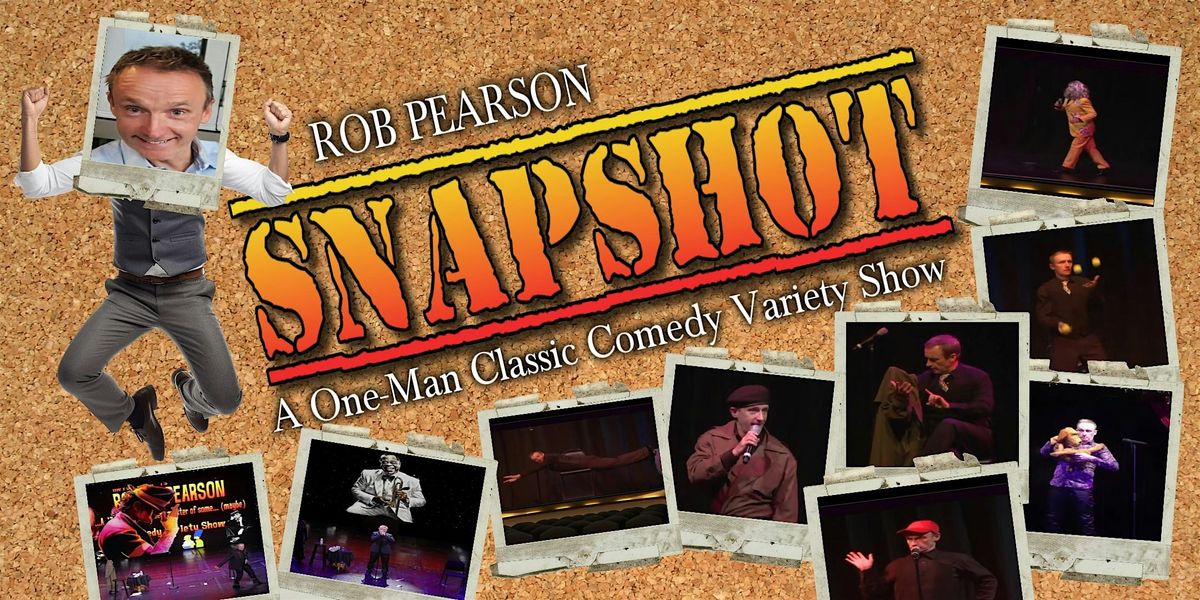 SNAPSHOT is a fast-moving one-man comedy variety show celebrating the golden days of entertainment. Packed with characters, physical comedy, surprises and unforgettable moments, Rob Pearson brings the lost art of classic variety roaring back to life. From comedy and impressions to mime, magic, music, dance, puppetry and harmonica, SNAPSHOT delivers a whirlwind of silly, clever and ridiculously fun entertainment where anything can happen and every moment is a surprise.