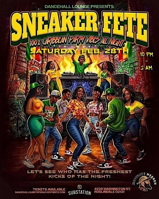 Saturday Feb 28th join us for SNEAKER FETE • 100 % Caribbean Party Vibes & Fresh Kicks!