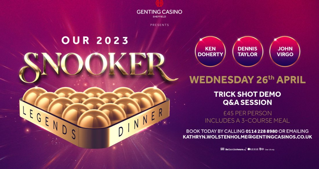 Calling our Snooker fans! Tickets for our Snooker Legends Dinner are now available so don't miss out and join us for an exciting evening with Ken Doherty John Virgo and Dennis Taylor.