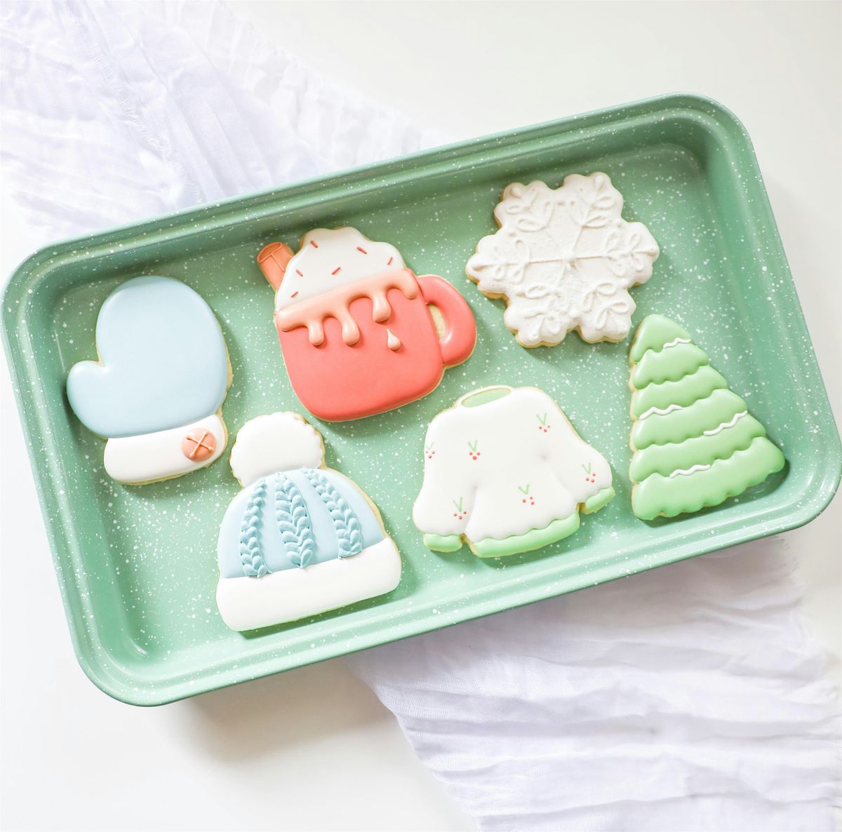This class is for the intermediate cookier or for someone who picks up on new concepts pretty quickly! If you have limited experience with sugar cookies, found yourself frustrated with royal icing, or if you're trying to have fun with family or friends, this is the class for you! We’ll be decorating six winter-themed cookies you’ll “sleigh” at! It’ll be “snow” much fun – I promise!