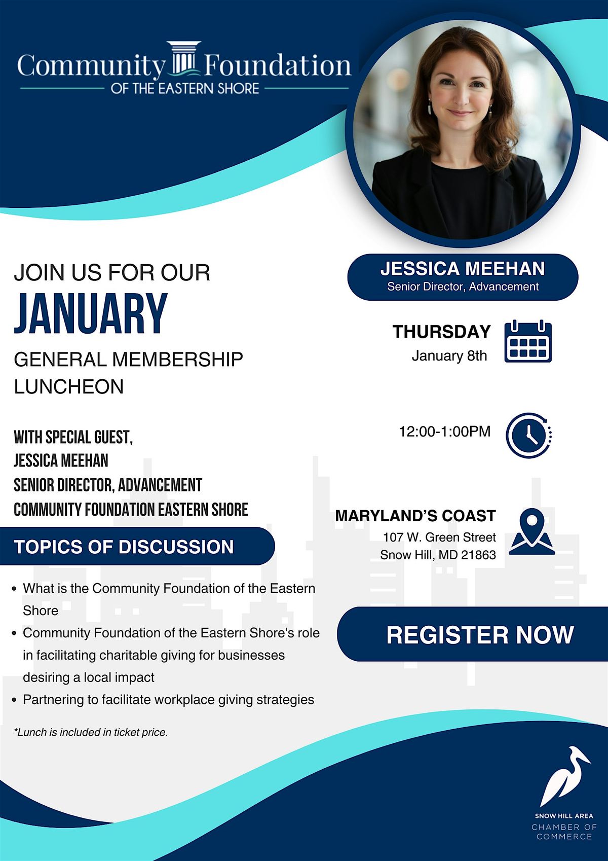 Join us for our January General Membership Luncheon featuring Jessica Meehan, Senior Director of Advancement at the Community Foundation