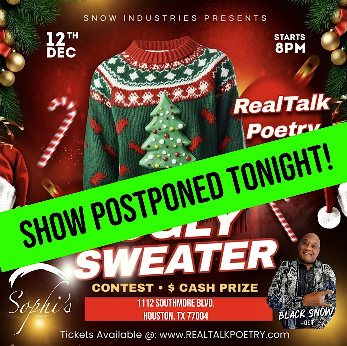 DEC 12TH - UGLY SWEATER CONTEST AND POETRY SHOW- SHOW POSTPONED