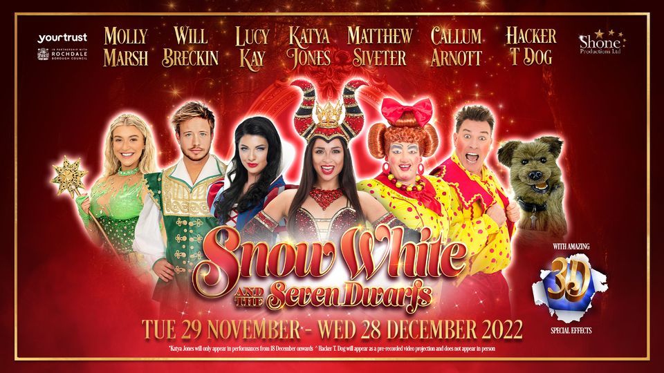 Our magical pantomime features a delicious blend of beautiful scenery, colourful costumes, a live band, dazzling dance routines, great songs and plenty of laughter.Come and join the beautiful Snow White and her seven little friends from the enchanted forest as they attempt to defeat the evil Wicked Queen who is overcome with jealously when her magic mirror declares that Snow White is the fairest in all the land. Will Snow White meet her handsome Prince and live happily ever after?
