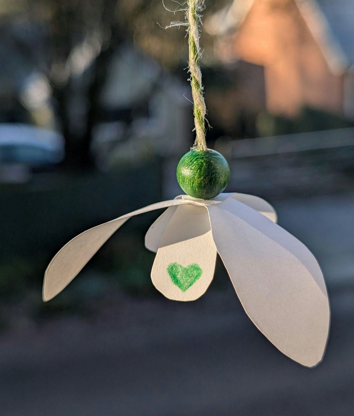 Enjoy making a pretty snowdrop ornament using different craft materials.