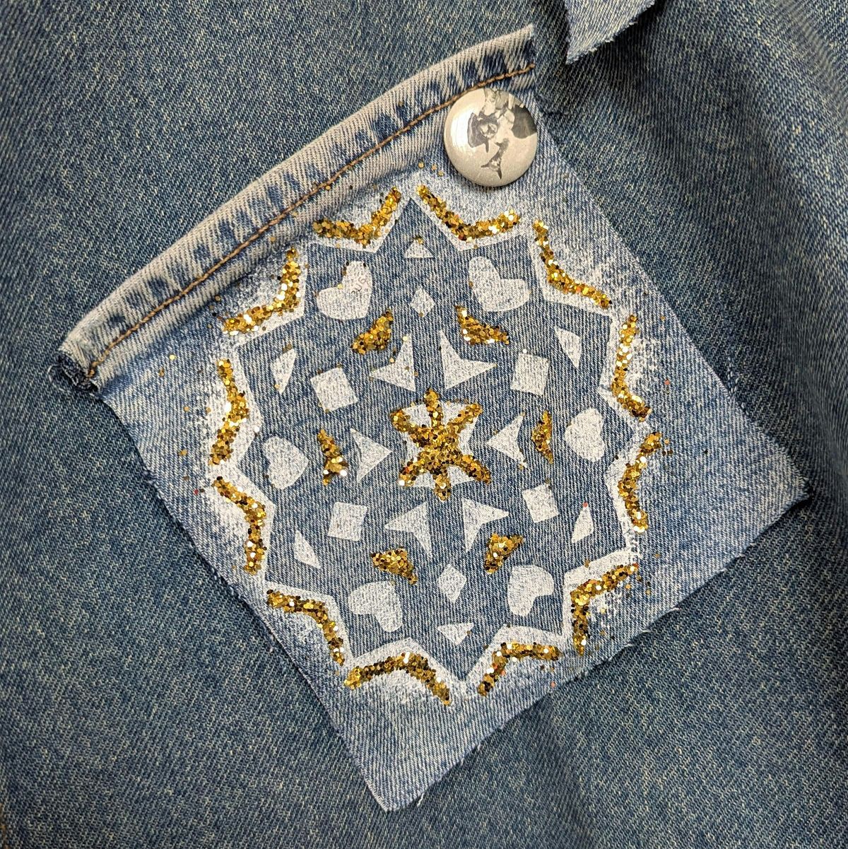 Tis the season to let it snow! Come make a paper snowflake to immortalize in denim and bedazzle till your heart's content! When you're done you can take it home to safety pin to your favorite jean jacket or sew it on to wear all year long.