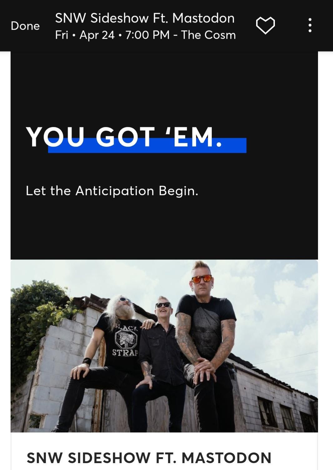 π Prepare to be amazed at SNW Sideshow Ft. Mastodon at Cosmopolitan of Las Vegas, the most anticipated gathering of the season! π Set against the stunning backdrop of Cosmopolitan of Las Vegas in vibrant Las Vegas, NV, this event promises to redefine your expectations. π Mark your calendars for April 24th, 2026 at 07:00 PM and get ready to immerse yourself in an atmosphere of wonder and excitement. β¨ From the moment you arrive, you'll be transported into a world where memories are made and stories come alive. They have crafted an experience that perfectly harmonizes entertainment, innovation, and community spirit. π Join us as we create moments that will be discussed for years!