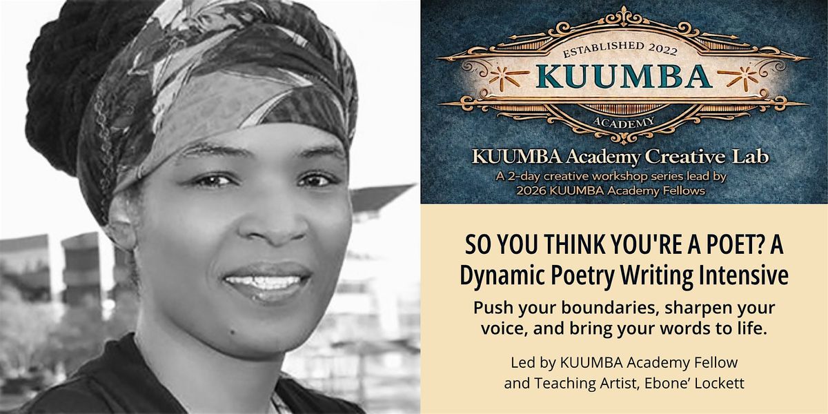 Led by KUUMBA Academy Fellow and Teaching Artist, Ebone’ Lockett, this workshop invites you to push your boundaries, sharpen your voice and bring your words to life.