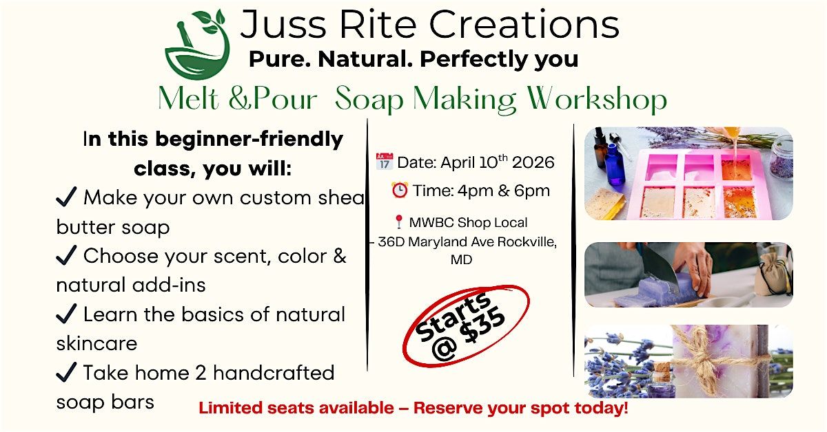 Join Juss Rite Creations for a fun and interactive Soap Making Workshop where you’ll create your own custom soaps to take home.