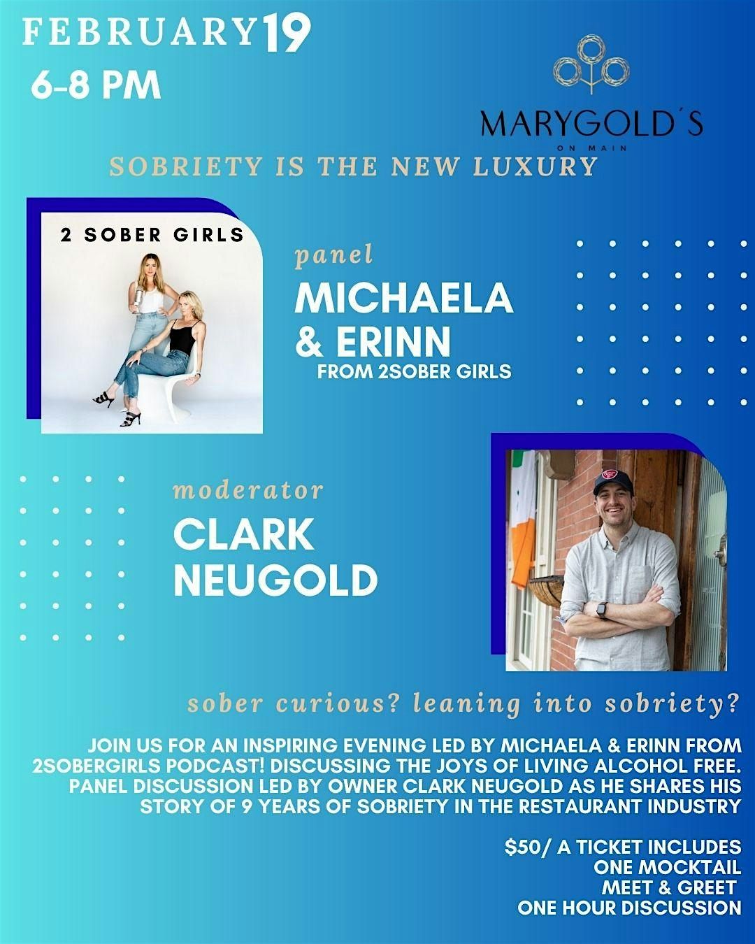 Join us for an inspiring evening with Michaela & Erinn from 2Sobergirls podcast dicussing the joys of living alcohol free! Panel discussion led by Clark Neugold who shares his story of 9 years of sobriety in the restaurant industry.