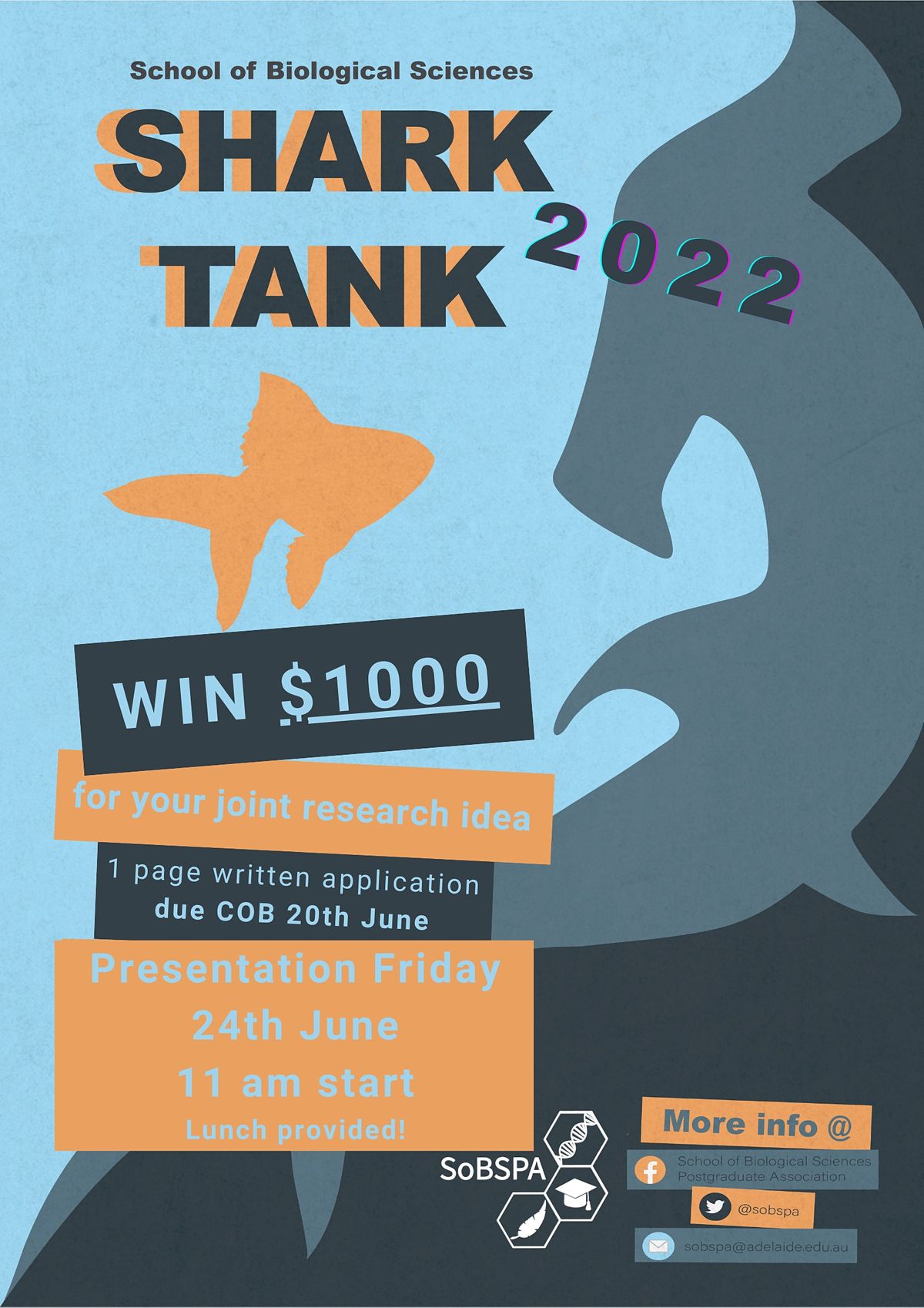 The Shark Tank grant scheme is back again for 2022. Whether you have applied and are presenting a short talk about your research for a chance to win $1000, or just want to support your fellow peers then come along to this event!