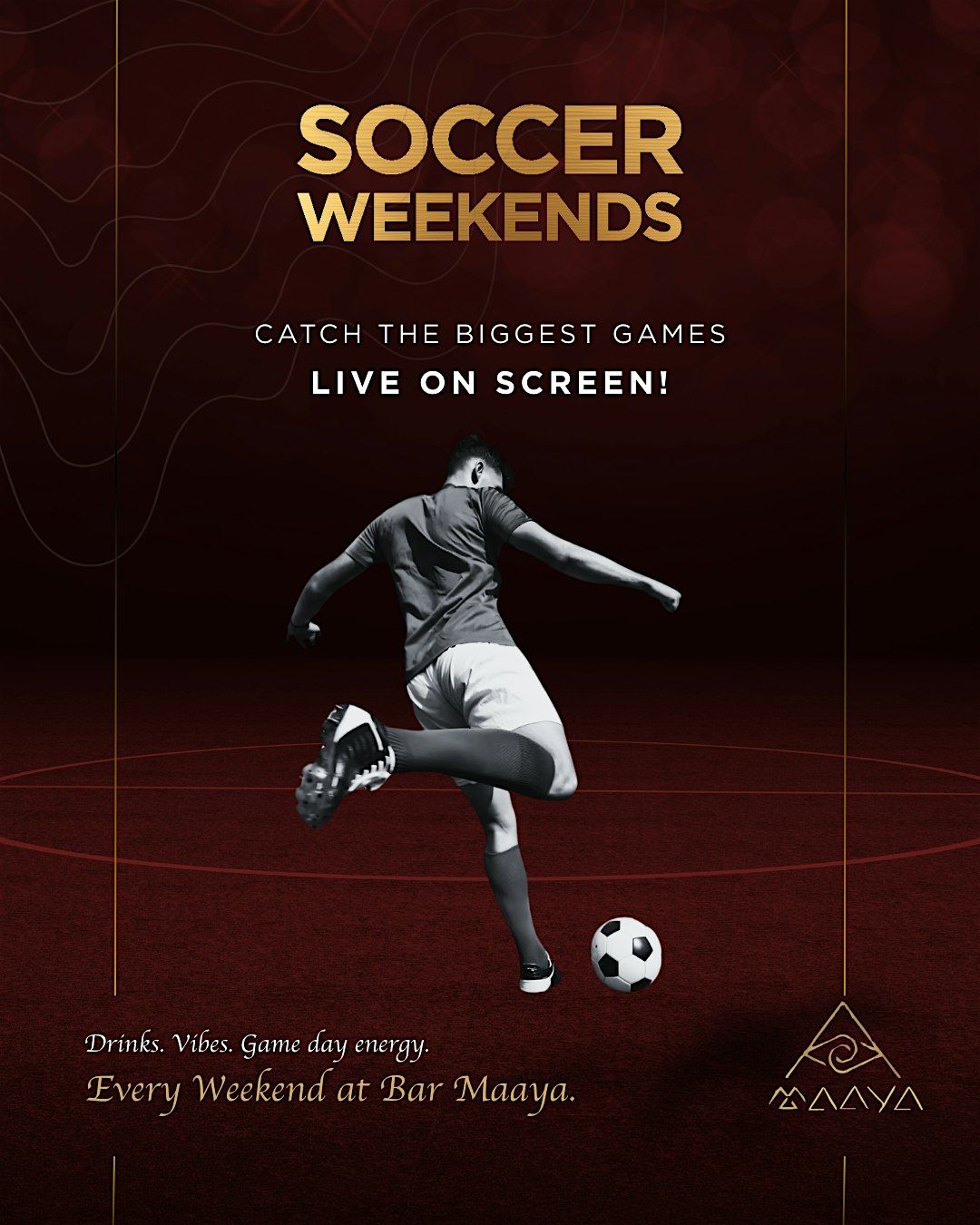 Ready for some live soccer action? Join us every weekend at Bar Maaya for an awesome in-person hangout!