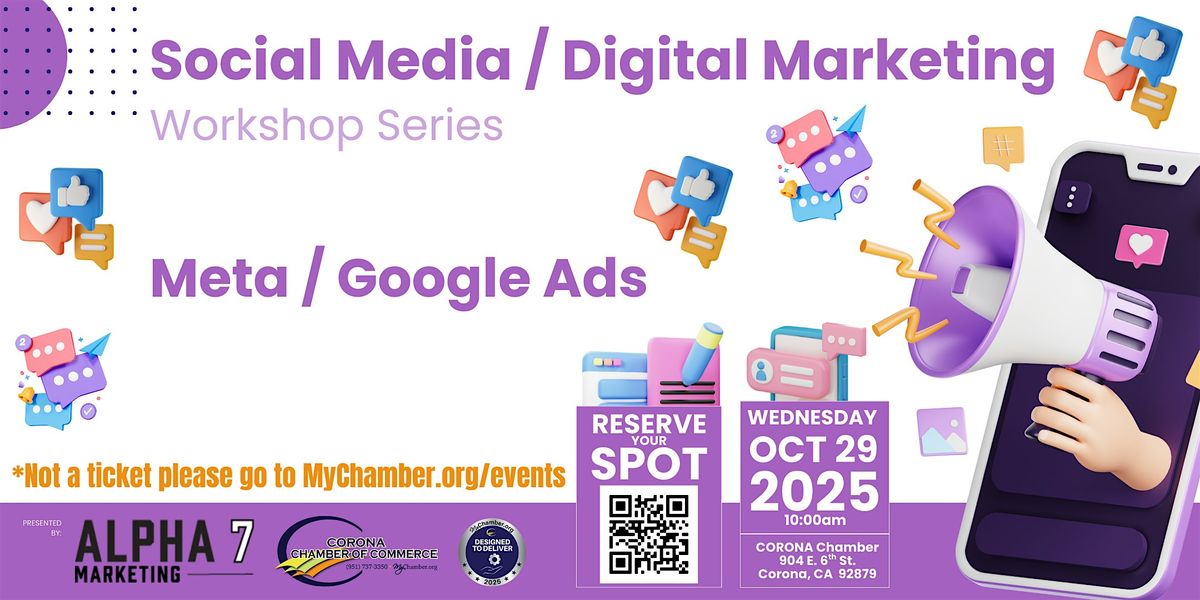 Join Alpha 7 Marketing for a Social Media & Digital Ads Workshop to grow your business! RSVP at www.MyChamber.org/events