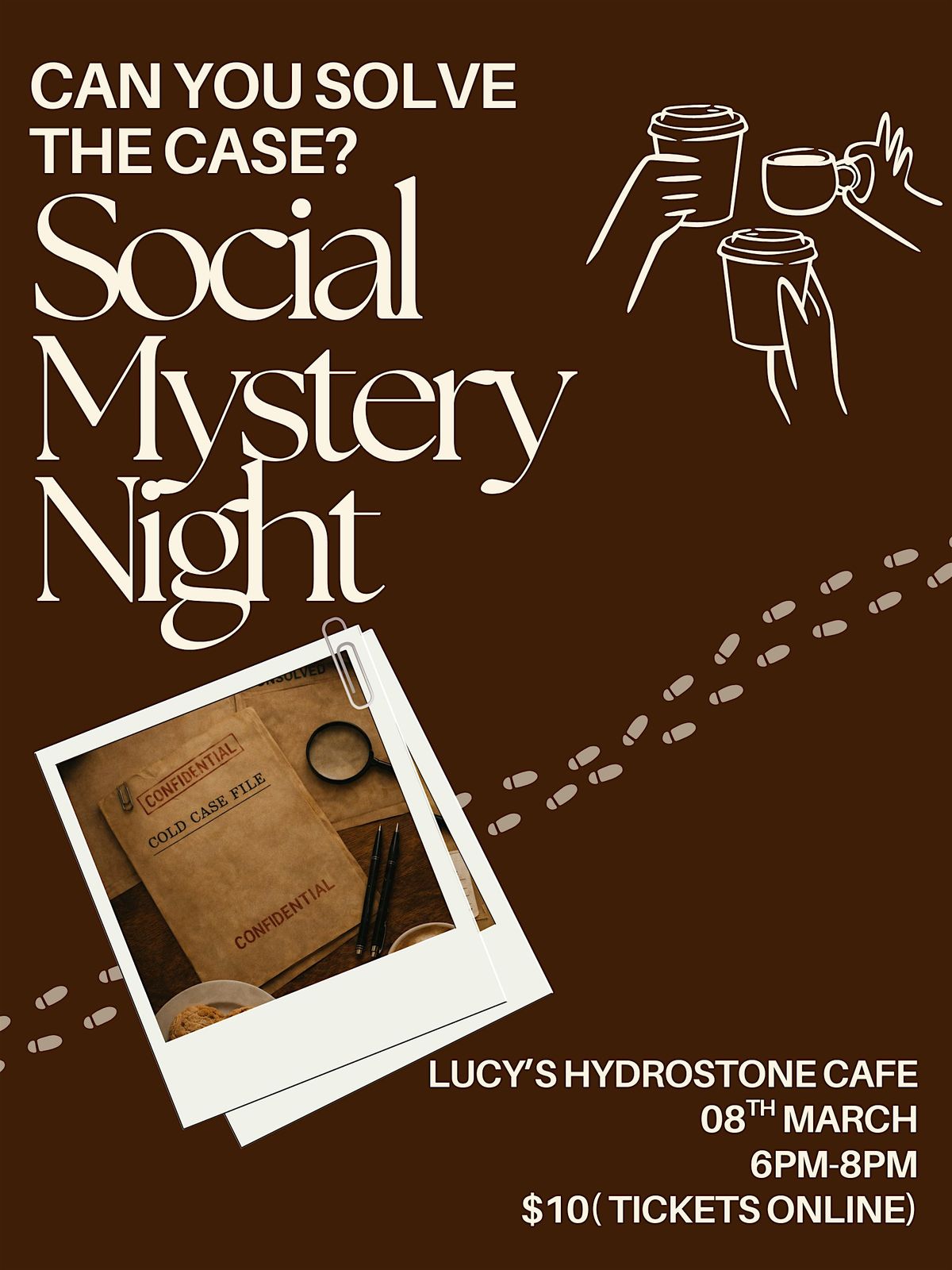 The evening begins with Human Connection Bingo - a light, structured way to meet others in the room. Each table will be give a case file. each case file will have a mystery, clues , detailed evidence and stories. So, you will get the chance to go through the case file , use your detective skills to come up with an answer. You can join us solo or with a friend. We will be solving the case in groups of four, so we get a chance to meet new people.