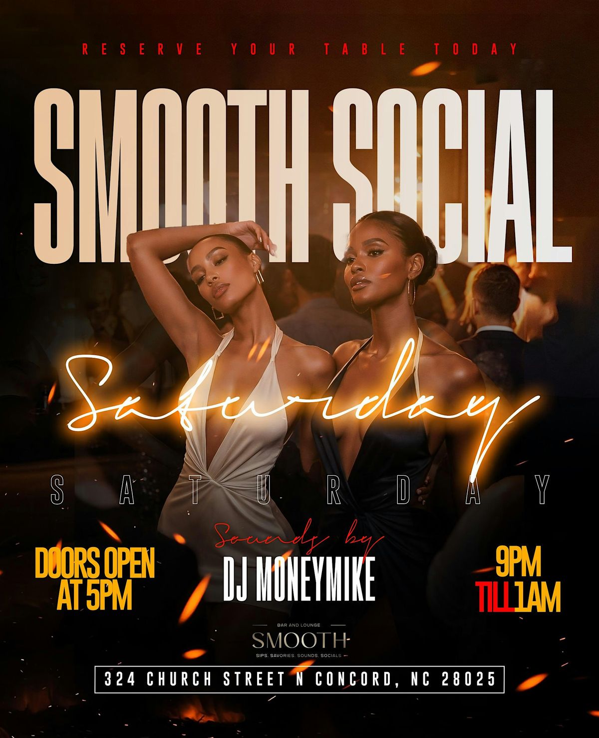 Step into the allure of the night at Social Saturdays- where sexy meets sophistication in an exclusive speakeasy atmosphere! Join us at Smooth Bar & Lounge for an unforgettable evening that tantalizes all your senses.