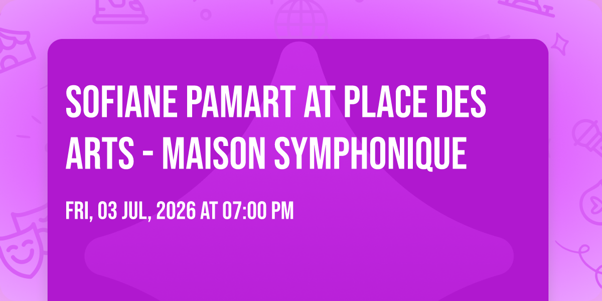 ✨ Discover the extraordinary at Sofiane Pamart at Place Des Arts - Maison Symphonique, where magic meets reality in ways you've never imagined! 🏛️ Set in Place Des Arts - Maison Symphonique nestled in bustling Montreal, QC, this event promises to be a landmark occasion. 📅 Taking place on July 3rd, 2026 at 07:00 PM, it's going to create an atmosphere where every moment becomes a cherished memory. 🌟 Immerse yourself in an experience crafted with attention to every detail, designed to surprise and delight at every turn. They have worked tirelessly to ensure this event exceeds all expectations, bringing together elements of entertainment, innovation, and pure joy. 🎊 Don't miss your chance to be part of this remarkable journey!