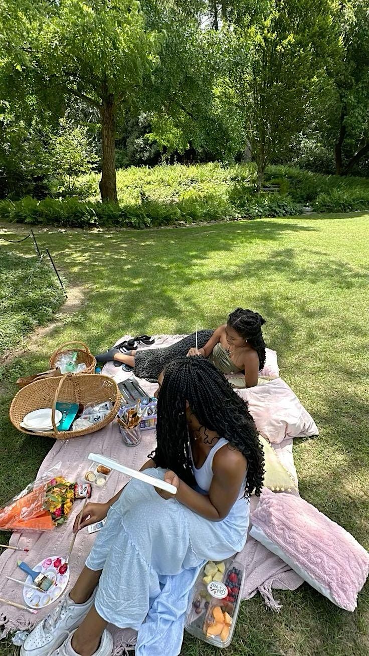 As we move toward the Spring Equinox, this is a moment of renewal, balance, and gentle reawakening. We’re celebrating that energy together with a cozy outdoor picnic, soft vibes, and a relaxed sip‑and‑paint session surrounded by other Black women.