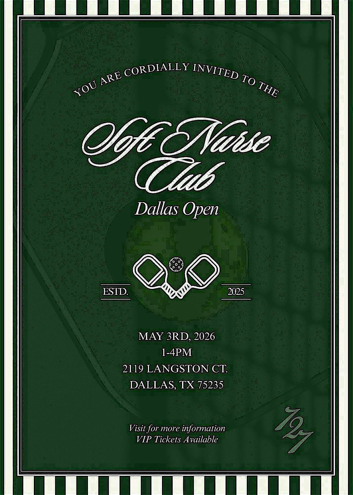To kick off Nurses Week, join us for an intimate social experience bringing together nurses from across the Dallas area for an evening centered around connection, movement, and good energy. Guests will enjoy light bites, drinks, music, and open play on the pickleball courts in a relaxed, country-club inspired setting.