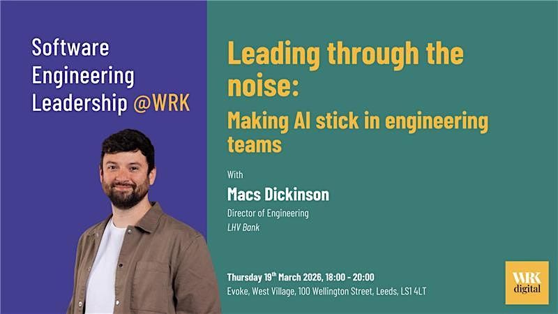I am delighted to share details for the next Software Engineering Leadership @ WRK event & Social - it's happening in Leeds during UK Tech Week on Thursday 19th March.