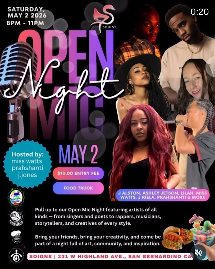 Join us for an unforgettable evening of creativity, connection, and live expression at our Soigne's Open Mic Night. This event brings together poets, musicians, storytellers, and creatives from across the community for a night where voices are heard and talent takes center stage.
