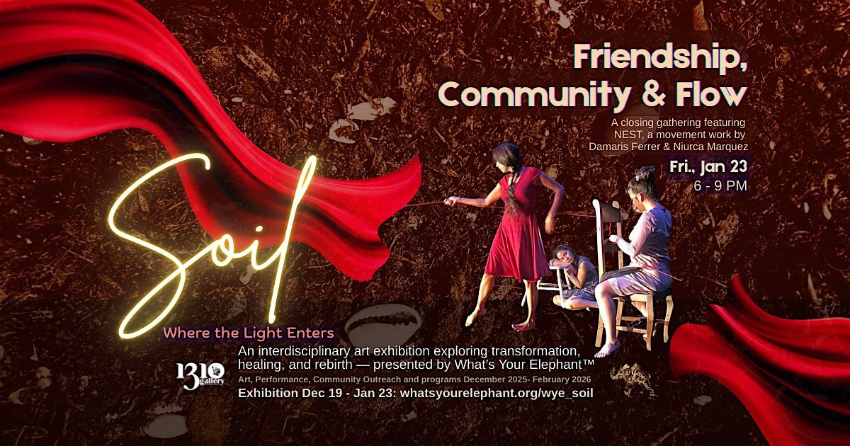 Join us for SOIL: Friendship, Community & Flow, the closing gathering of SOIL: Where the Light Enters, a month-long community art & wellness exhibition presented by What’s Your Elephant™.
