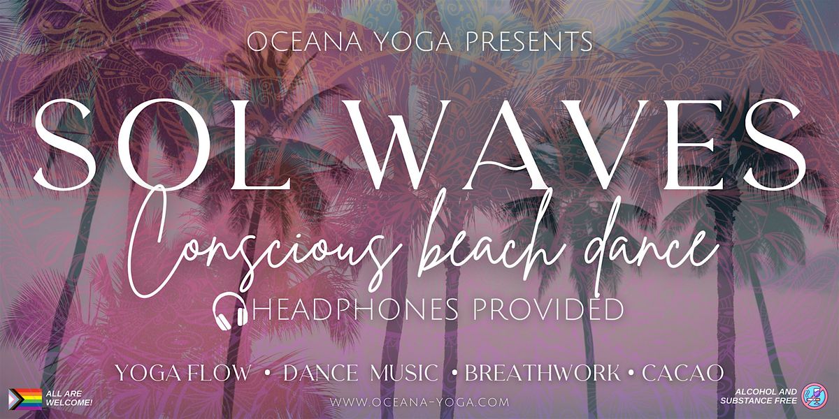 Sol Waves by Oceana Yoga is a conscious beach dance experience guided by embodied movement, curated dance music, breath work and cacao ceremony — all held in silent-disco style with headphones provided. This is an invitation to connect with yourself, the ocean, and community in a playful, expressive, and substance-free space.