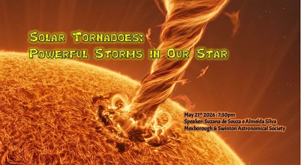 Tornadoes on Earth are among the most dramatic and powerful events in nature, formed by columns of rapidly rotating air. What may come as a surprise is that similar swirling structures also exist far beyond our planet, including the Sun's atmosphere. On the Sun, these “solar tornadoes” are not made of air, but of extremely hot, electrically charged gas guided by intense, twisted magnetic fields. This magnetic structure allows them to grow to enormous sizes, reaching thousands of times the size of any tornado on Earth and becoming far more energetic. In this talk, we will explore what solar tornadoes are, how they are observed, and why they matter. We will also discuss how they could influence space weather and, in some cases, affect technologies we rely on in everyday life here on Earth.