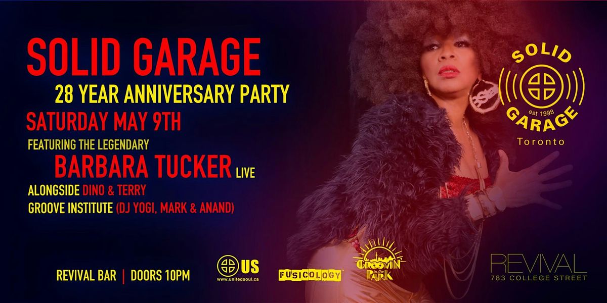 Solid Garage 28 Year Anniversary Party w/ Barbara Tucker Live (Sat May 9th at Revival Bar)