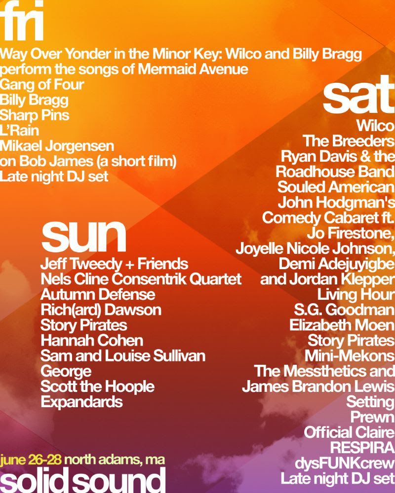 Solid Sound Festival: Wilco Billy Bragg The Breeders & Ryan Davis and The Roadhouse Band - 3 Day Pass