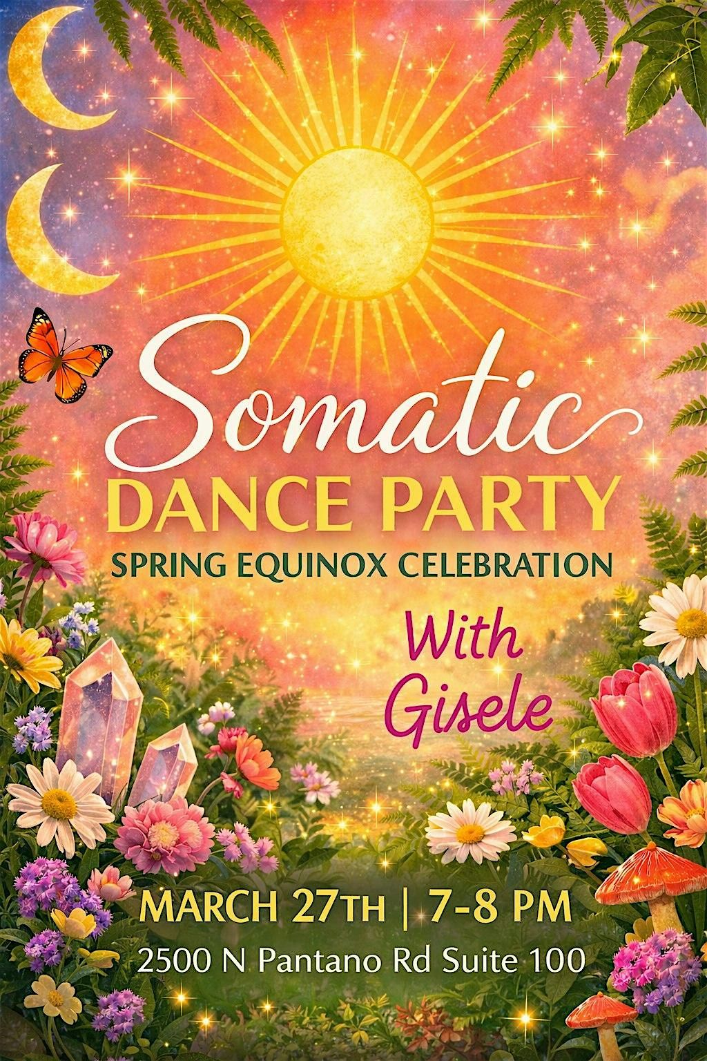 Get ready to move and groove at our Somatic Dance Party celebrating the vibrant energy of the Spring Equinox! This in-person gathering is all about connecting with your mind, body and soul, shaking off the winter blues, and welcoming new beginnings through expressive dance. Come as you are, bring your friends, and let's vibe together in a joyful, free-spirited atmosphere. Don't miss out on this awesome chance to celebrate the season with some intuitive and somatic movement!