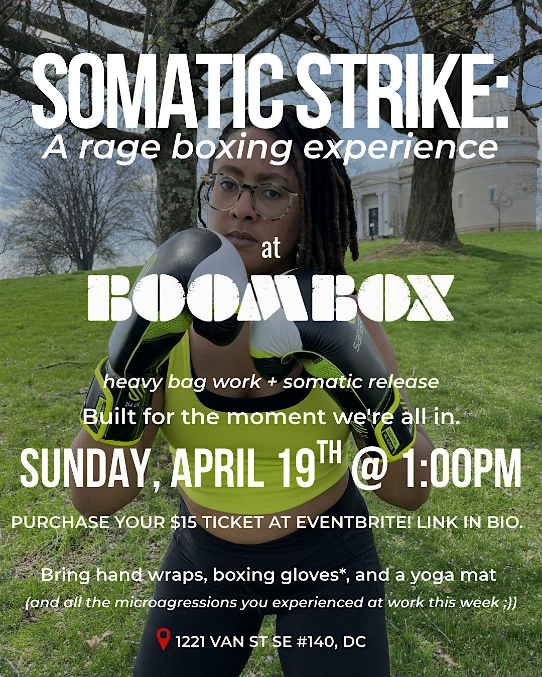 Join me Sunday, April 19th at 1pm at BOOMBOX Boxing Gym (1221 Van St SE #140, DC) in Washington, DC for our first session.