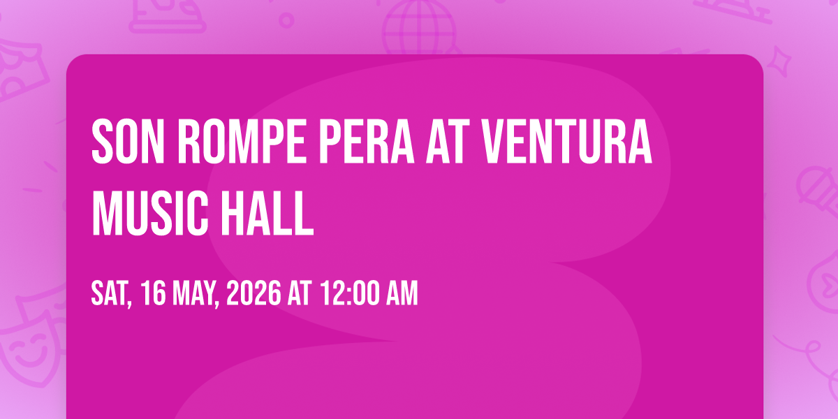 β¨ Embark on an extraordinary journey at Son Rompe Pera at Ventura Music Hall, where every moment promises to be unforgettable! π Imagine of transforming Ventura Music Hall in the heart of Ventura, CA into a realm of endless possibilities. π Join us on May 16th, 2026 at 12:00 AM for an experience that will challenge your imagination and exceed your expectations. π― This carefully curated event combines the finest elements of entertainment, innovation, and community spirit. Whether you're an adventure seeker, culture enthusiast, or someone looking for unique experiences, this event offers something special for everyone. π Don't miss this chance to be part of something extraordinary!
