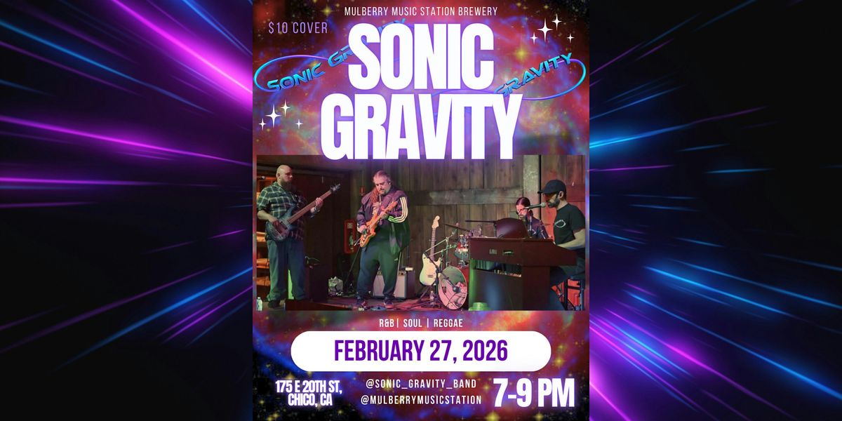 Sonic Gravity is an R&B band from Chico, California known for bringing smooth, dance-friendly music that blends soulful rhythms and powerful vocals with feel-good reggae grooves, making them a popular choice for outdoor concerts, social gatherings, and dance-oriented shows!