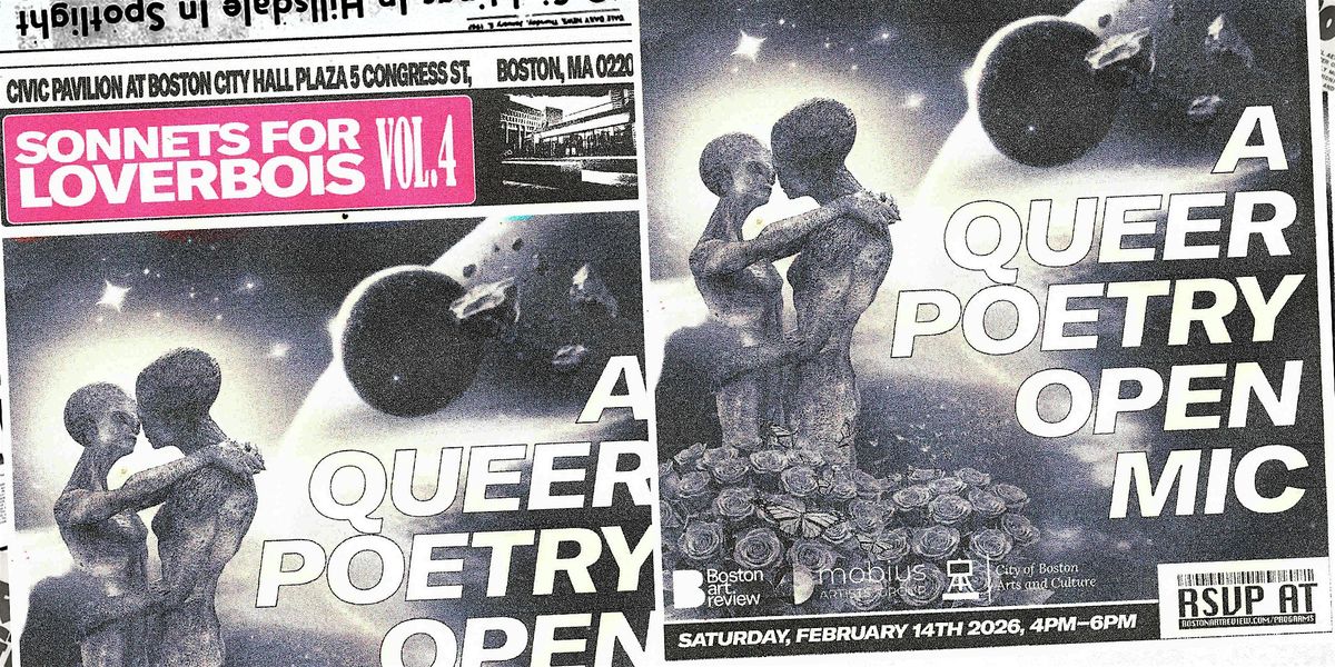 Boston’s annual queer Valentine’s themed open mic is lovingly hosted by the Boston Art Review and co-curated by Jasper A. Sanchez and MC Julissa Emile. This event was made possible with support from the Mayor’s Office of Arts & Culture and sponsorship by Mobius Artists Group.