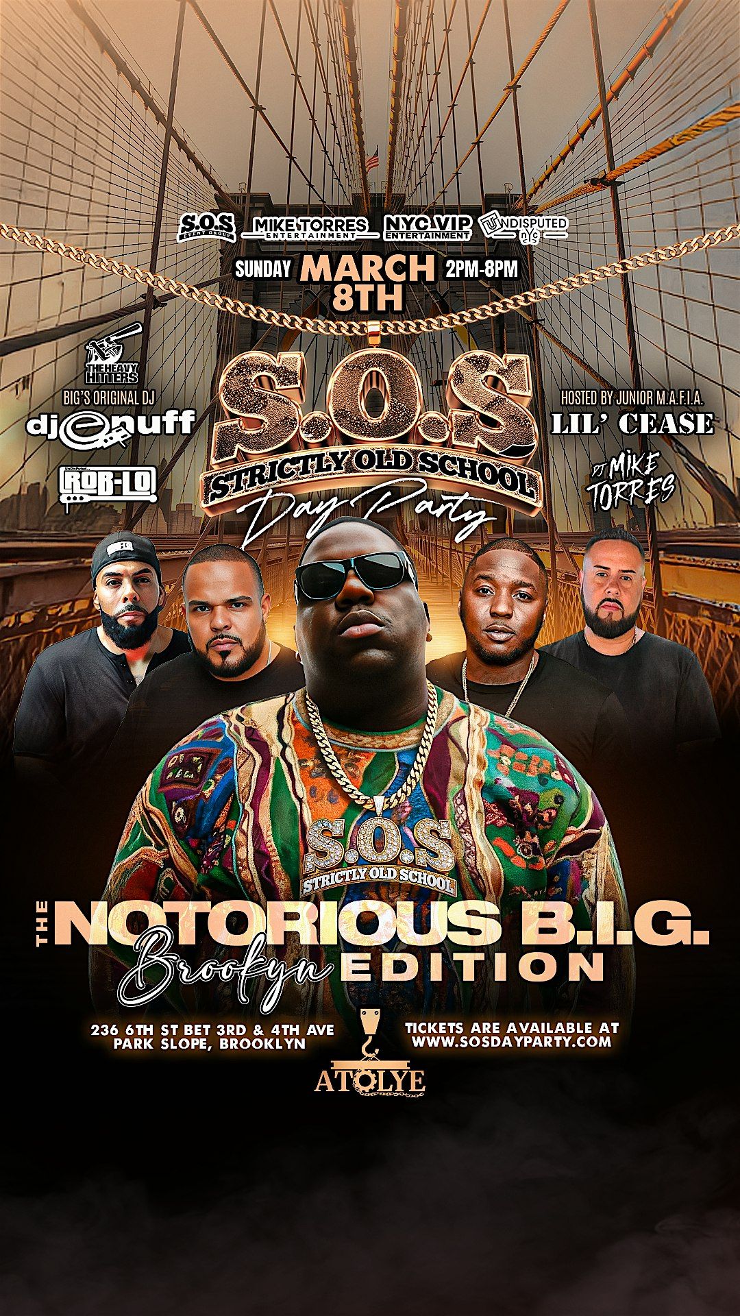 Join The SOS Day Party as we pay tribute to the Late Great Christopher Wallace aka The Notorious B.I.G on Sunday, March 8th @ Atolye in his Hometown of BROOKLYN...