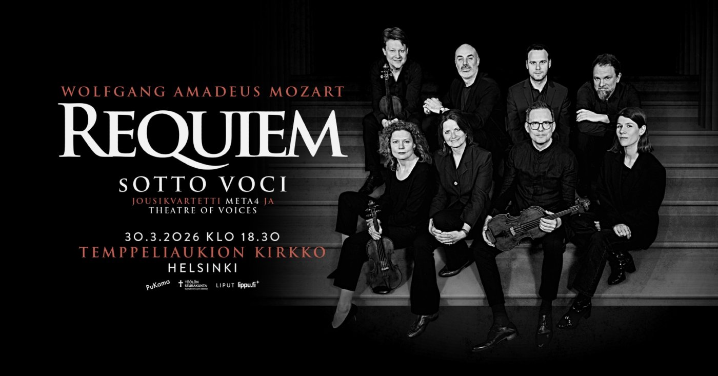 Temppeliaukion kirkossa kuullaan 30.3. yksi musiikin historian rakastetuimmista mestariteoksista, Mozartin Requiem, ainutlaatuisena sovituksena lauluyhtyeelle ja jousikvartetille. Teoksen tulkitsevat Suomen menestynein kamariyhtye Meta4 sekä Grammy-palkittu Theatre of Voices. Konsertti järjestetään yhteistyössä Töölön seurakunnan kanssa.