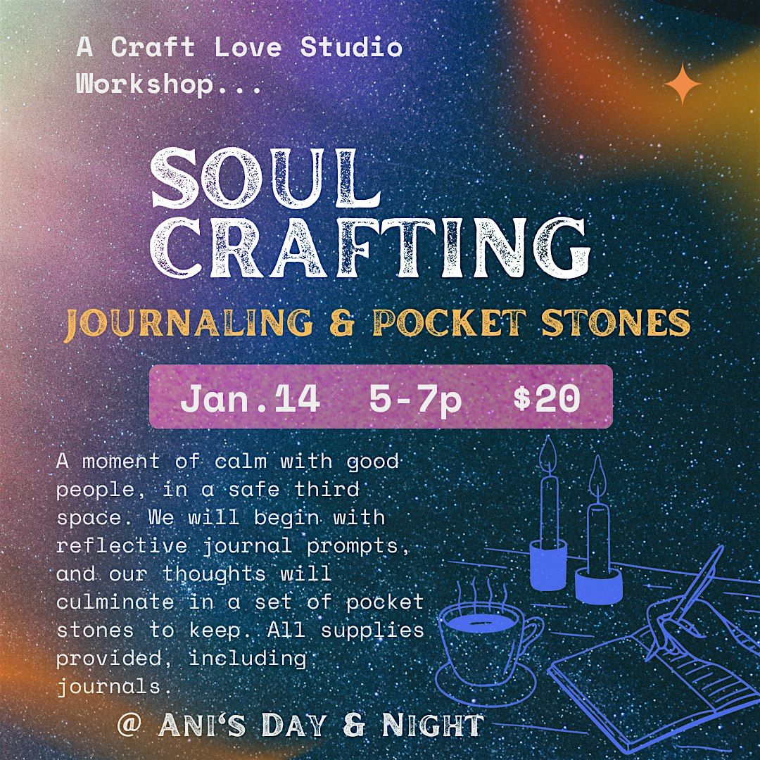 A moment of calm, good people, and a warm space. We will begin with reflective journal prompts, then make a set of pocket stones to carry.