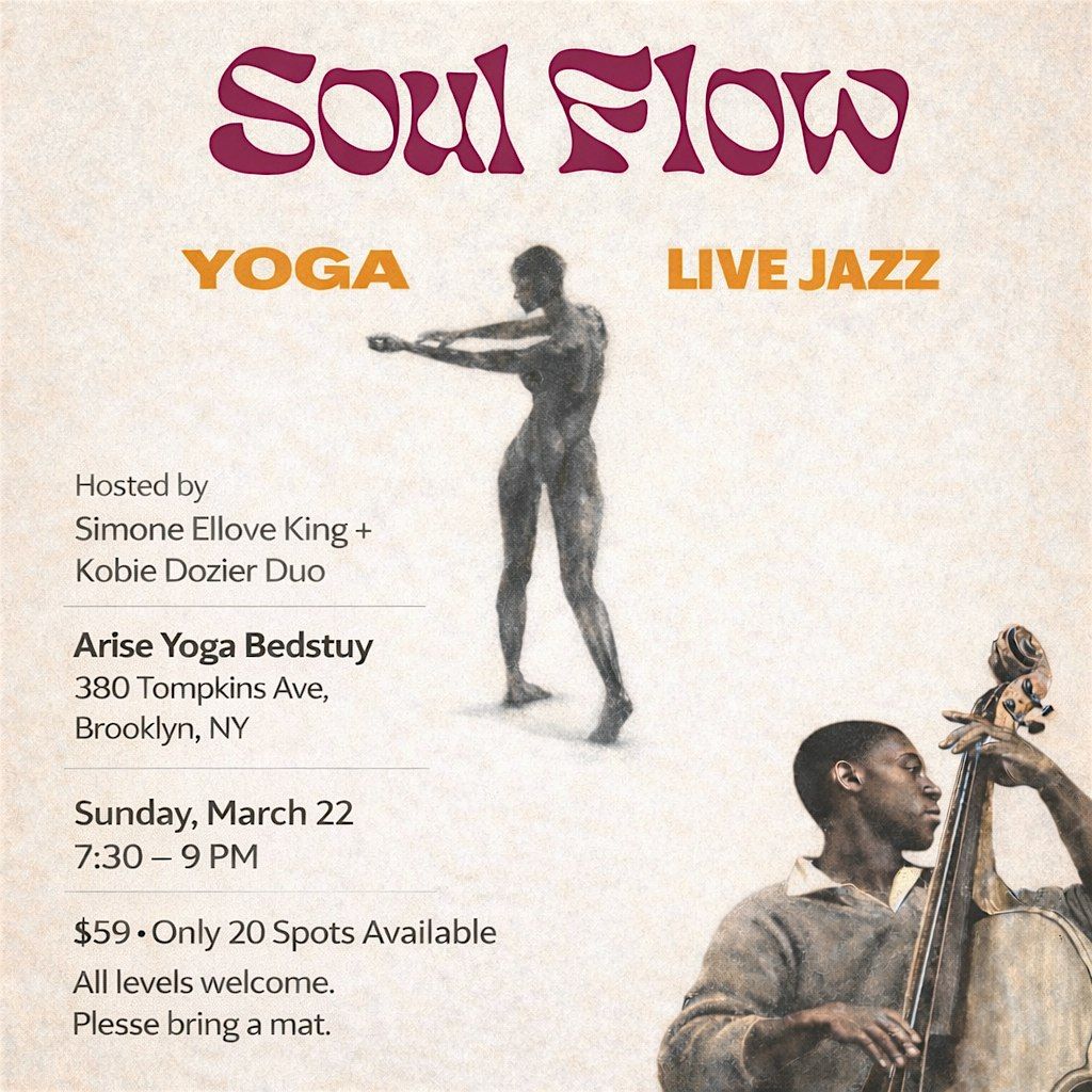 Soul Flow is a one-of-a-kind yoga + live jazz experience in Brooklyn, guided by Simone Ellove King and accompanied by live music from the Kobie Dozier Duo.