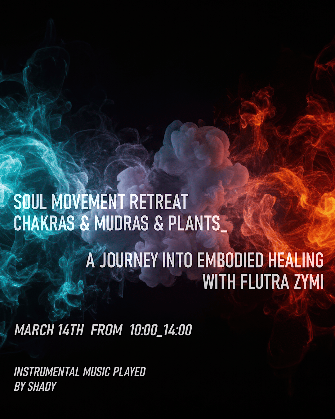 In this intimate retreat workshop, Flutra will share her personal resilience journey of healing through the ancient power of plants and herbs and guide you in aligning your seven energy centers — the chakras — through the practice of sacred embodiment with mudras (hand gestures) and affirmation, sound vibration, asanas (yogic postures), and intuitive free movement and we’ll explore how to come home to ourselves to feel your soul and listen to our body.