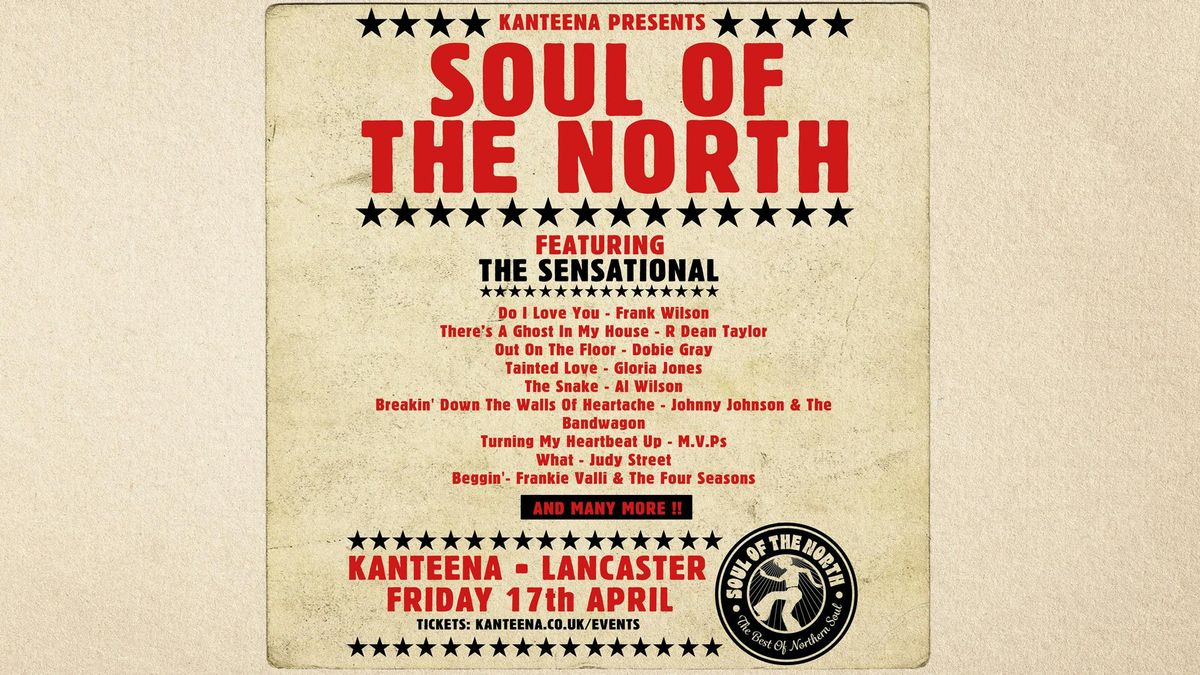 ’SOUL OF THE NORTH’ delivers 100% live Northern Soul with a 9-piece band featuring superb male/female vocals and horn section! Authentic recreations that ‘keep the faith’ with the spirit of Northern Soul, creating a live homage to vinyl classics and dancefloor fillers - including:Do I Love You - Frank Wilson